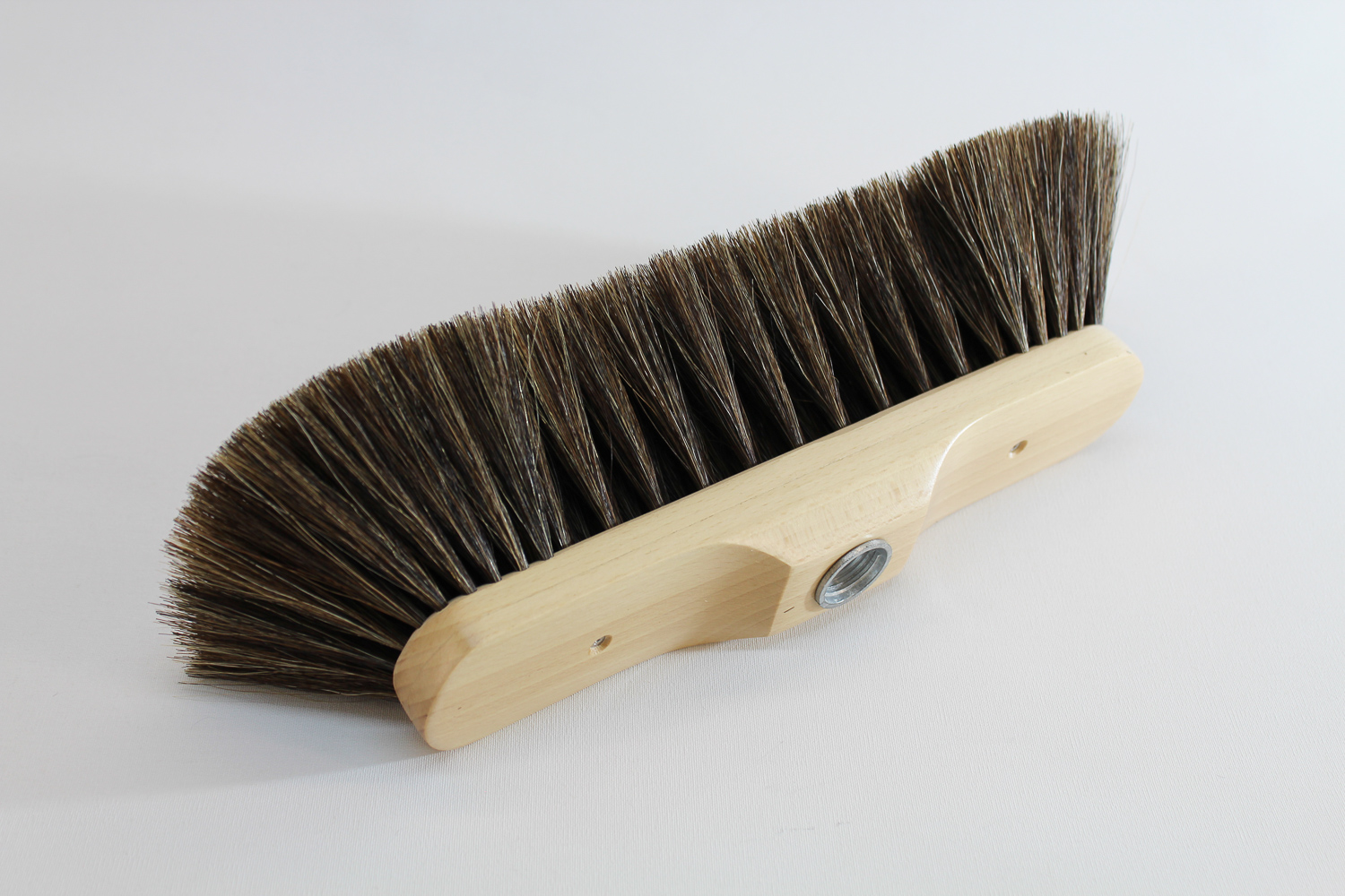 Durch unseren hauseigenen Handeinzug sind die Borsten besonders fest eingebunden, was für eine außergewöhnlich lange Haltbarkeit sorgt. Der lackierte Holzkörper aus heimischem Buchenholz liegt gut in der Hand und vereint Funktionalität mit klassischem Design – hergestellt wie vor 100 Jahren.