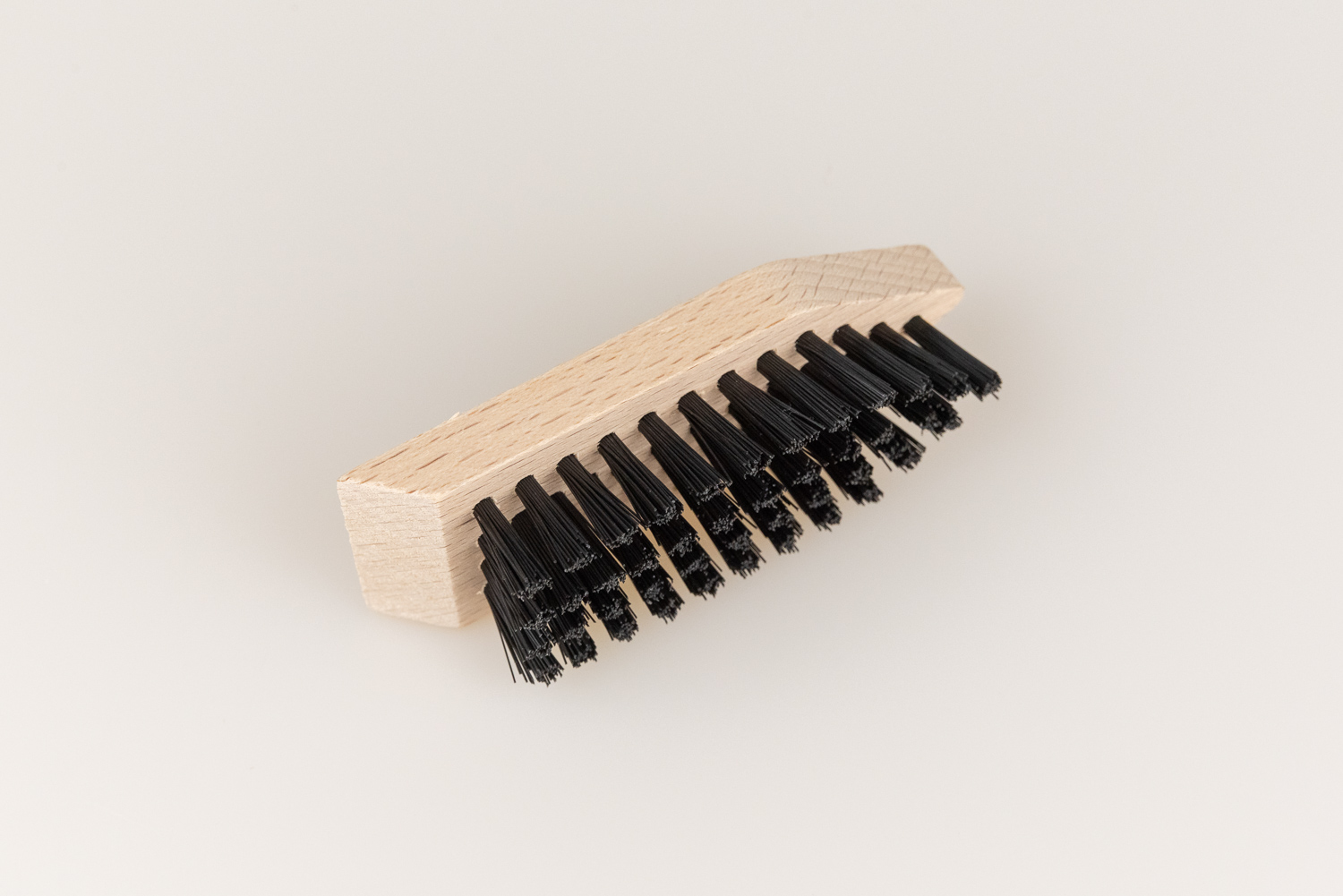 Diese kleine Schuhschmutzbürste mit Kunstborsten ist besonders pflegeleicht und robust. Die Borsten reinigen zuverlässig synthetische und glatte Oberflächen. Der ergonomische Buchenholzgriff liegt gut in der Hand. Mit integrierter Schmutzkante am Holzkörper – perfekt zum Abstreifen groben Drecks an den Sohlen.