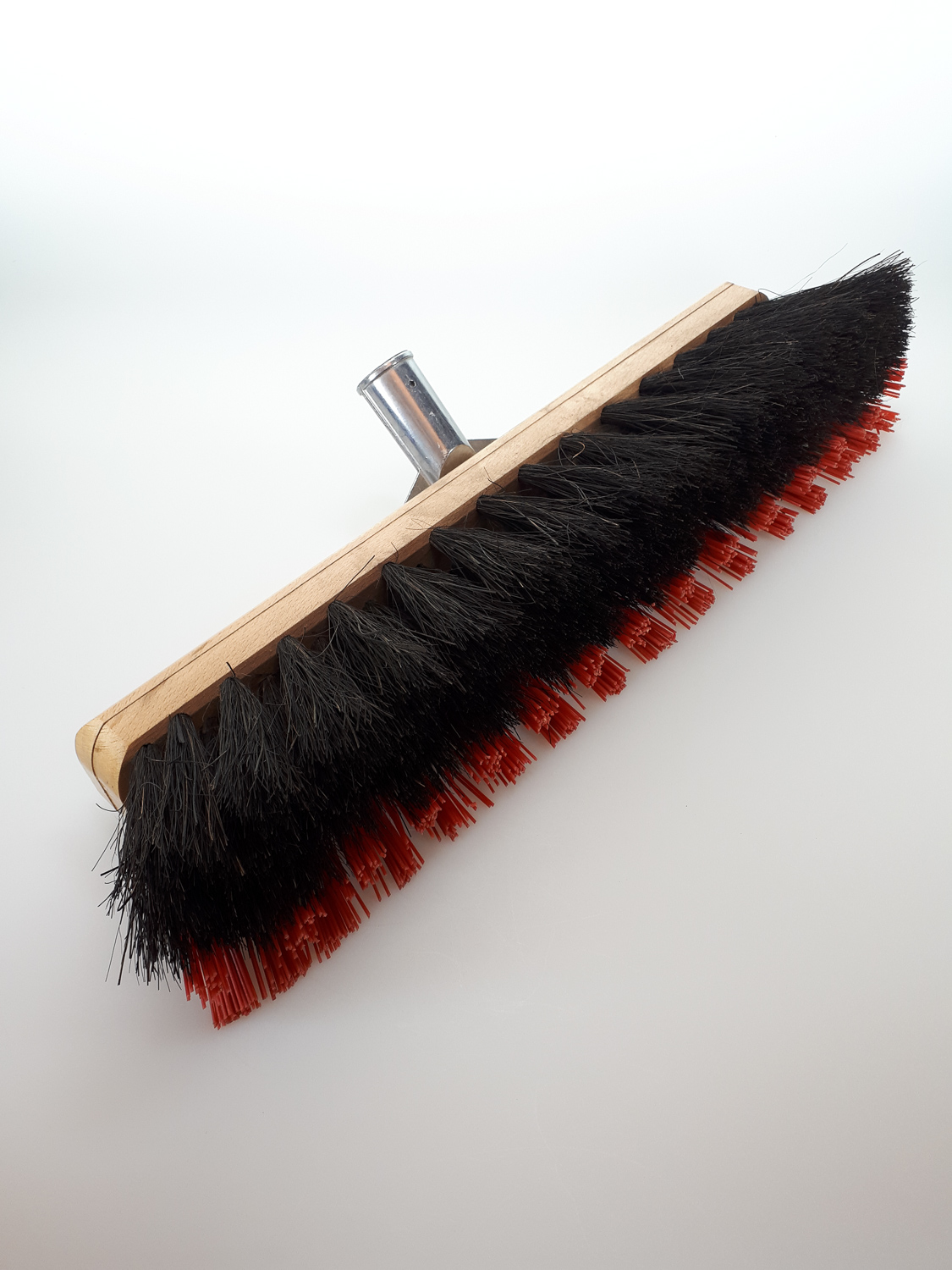 Dieser Universalbesen kombiniert zwei Borstentypen für maximale Effizienz: Die vordere Reihe aus harter Kunststoffborste löst festsitzenden Schmutz, die hintere Reihe aus Arengafasern nimmt ihn direkt auf. Besonders geeignet für stark verschmutzte Werkstattbereiche.